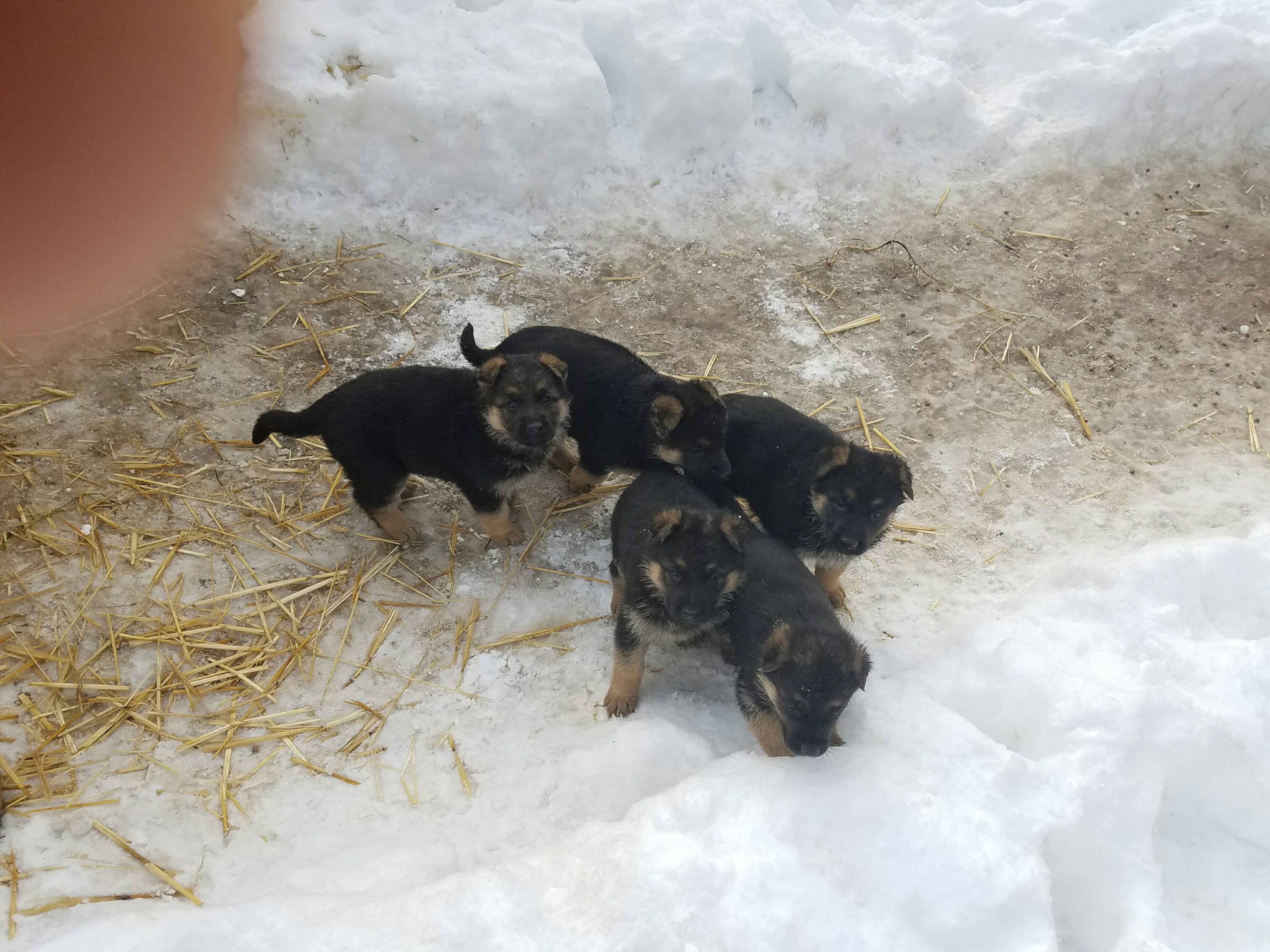 As he grew, we hoped that someday we would be able to find the right female for him. The Lord was so faithful. Again, through a goat sale, some shepherd breeders noticed Ranger in the yard and asked about him. We told them that we hoped someday to find a female. They told us that they happened to have a female available that had just been born. Her parents were imported straight from Germany and were top notch animals. Wow! We were able to pick up Renate-Sonja Van Buskirk shortly thereafter.